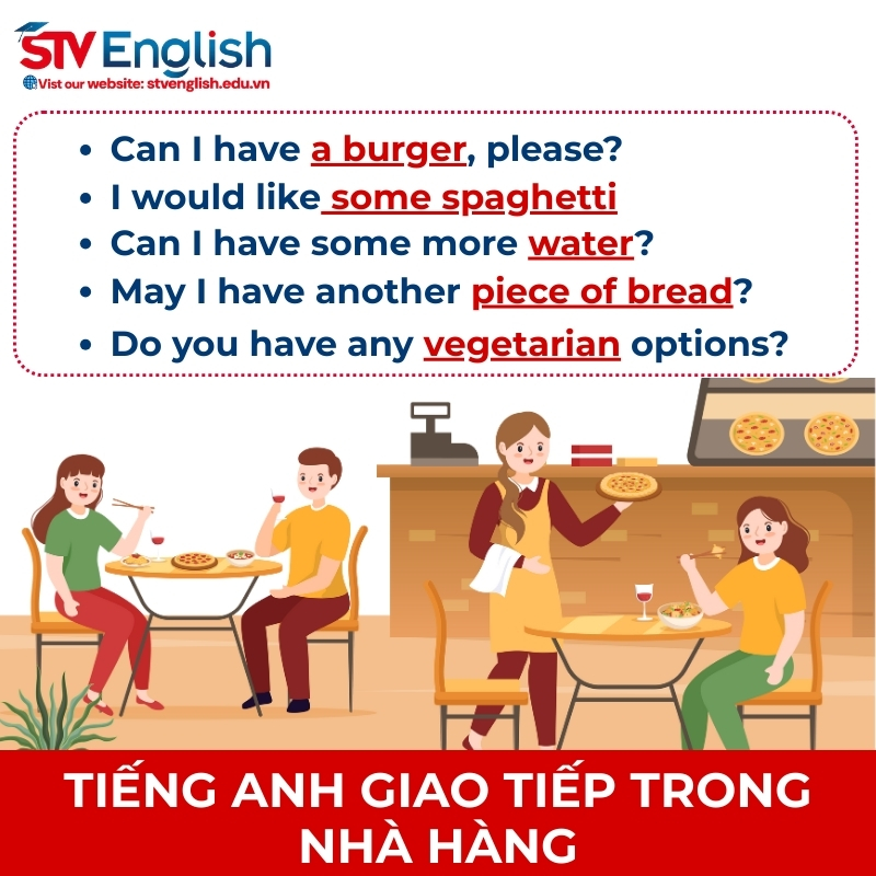 I. MẪU CÂU TIẾNG ANH GIAO TIẾP CHO TRẺ EM KHI VÀO NHÀ HÀNG
