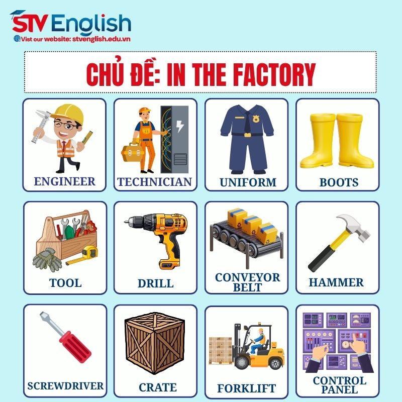 I. TỪ VỰNG TIẾNG ANH GIAO TIẾP CHO BÉ VỀ CHỦ ĐỀ IN THE FACTORY