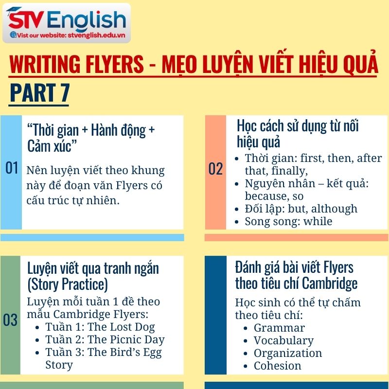 Nếu bạn muốn tìm hiểu thêm các khóa luyện thi Writing Flyers, hãy truy cập STV English để khám phá các khóa học chuyên sâu.